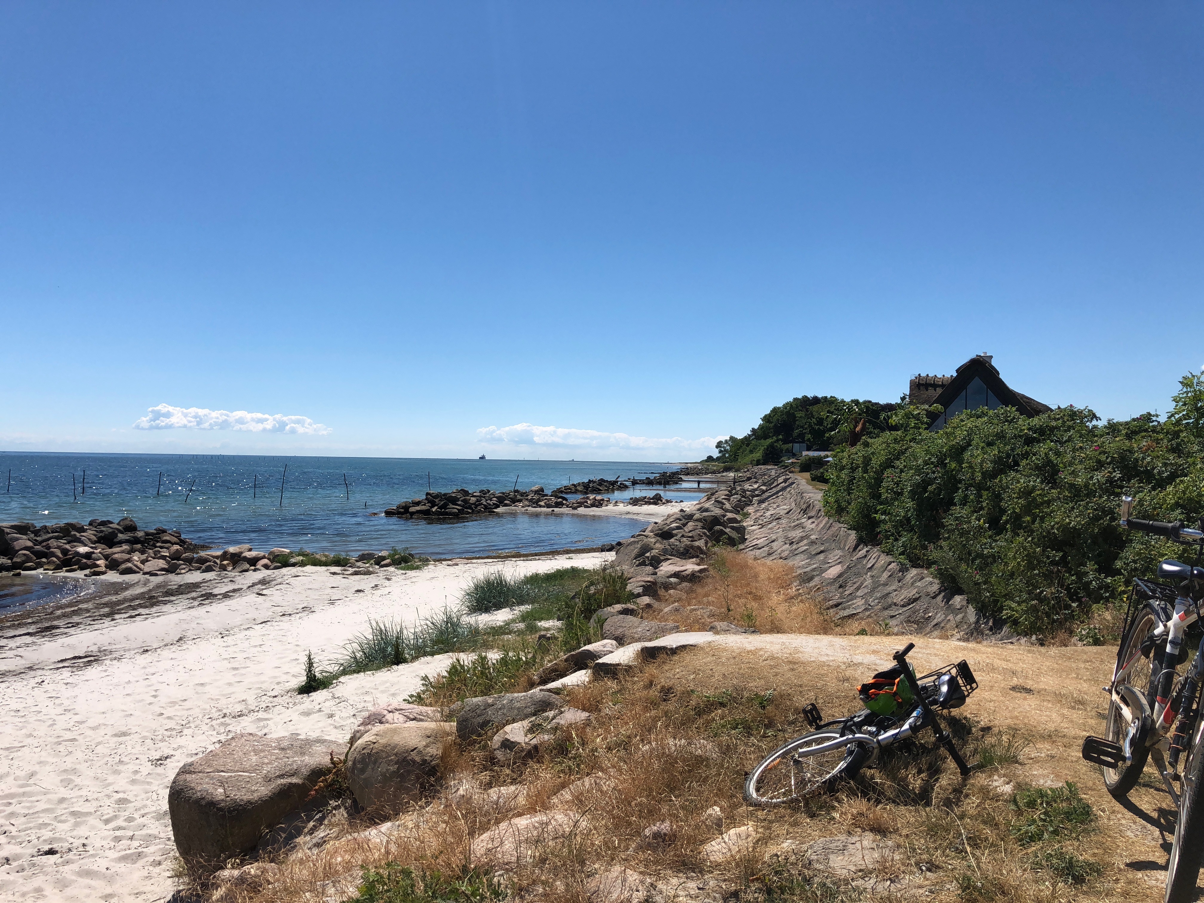 Auf der Heimfahrt haben wir uns enschlossen, an der Südwestküste Fünens entlang zu fahren. Ein kleines niedliches Fischerdorf jagt das nächste. An einem kleinen Strand nördlich von Bjerghammer bogen wir spontan ab in einen kleinen Waldweg um hinter dem Wald einen traumhaften Strand zu entdecken:
