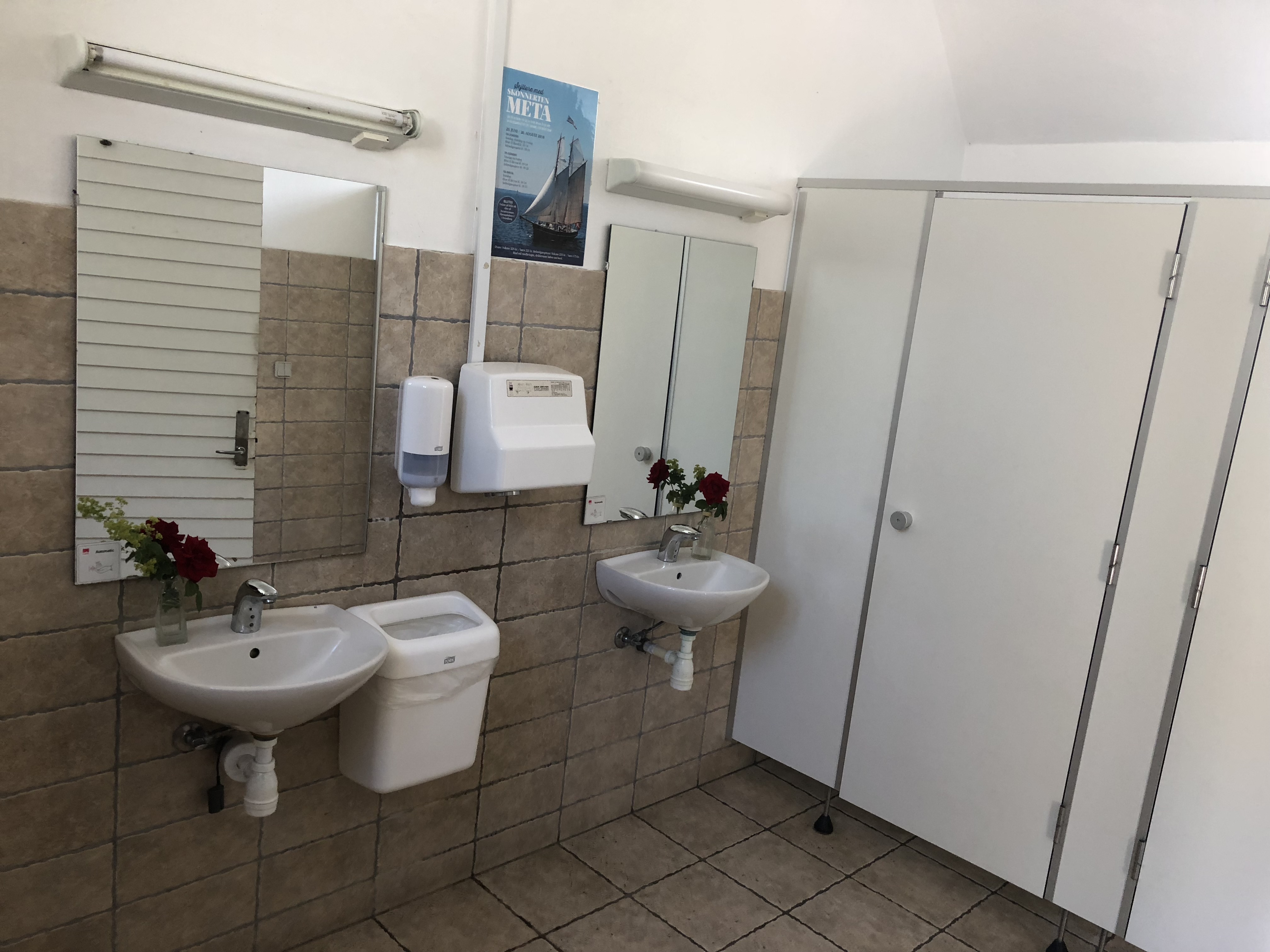 Die Sanitäreinrichtungen waren absolut zufriedenstellend. Nicht unbedingt modern, aber sauber. Das Duschen war gratis, auch der Strom war inklusive. Das alles noch bis zum 1.7. mit ACSI für 19 EUR pro Nacht – klasse!